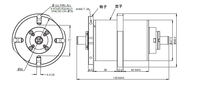 緊定螺絲固定。定子部分通過止轉片與設備固定部位連接。
